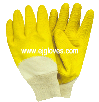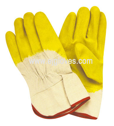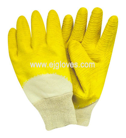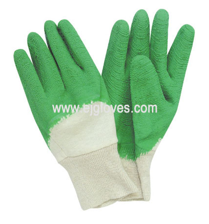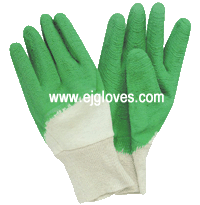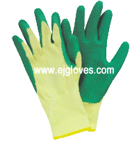 Green latex coated gloves,